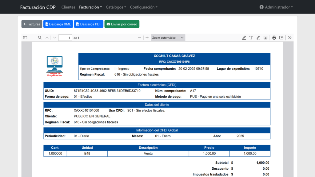 - Cumplimiento Normativo: Cumple con las regulaciones del SAT y evita sanciones o multas.